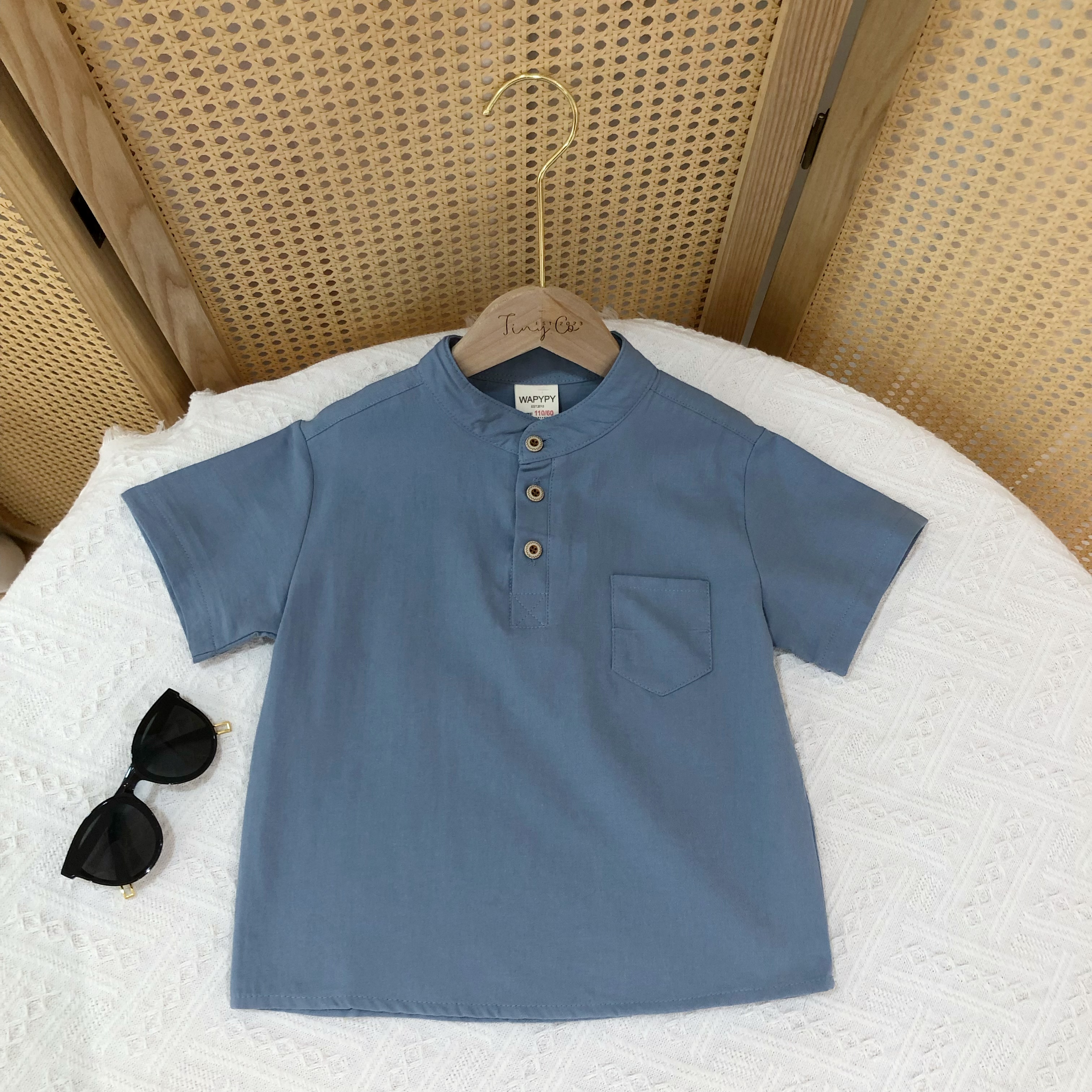 Boy's Blue Linen Short Sleeve Shirt
