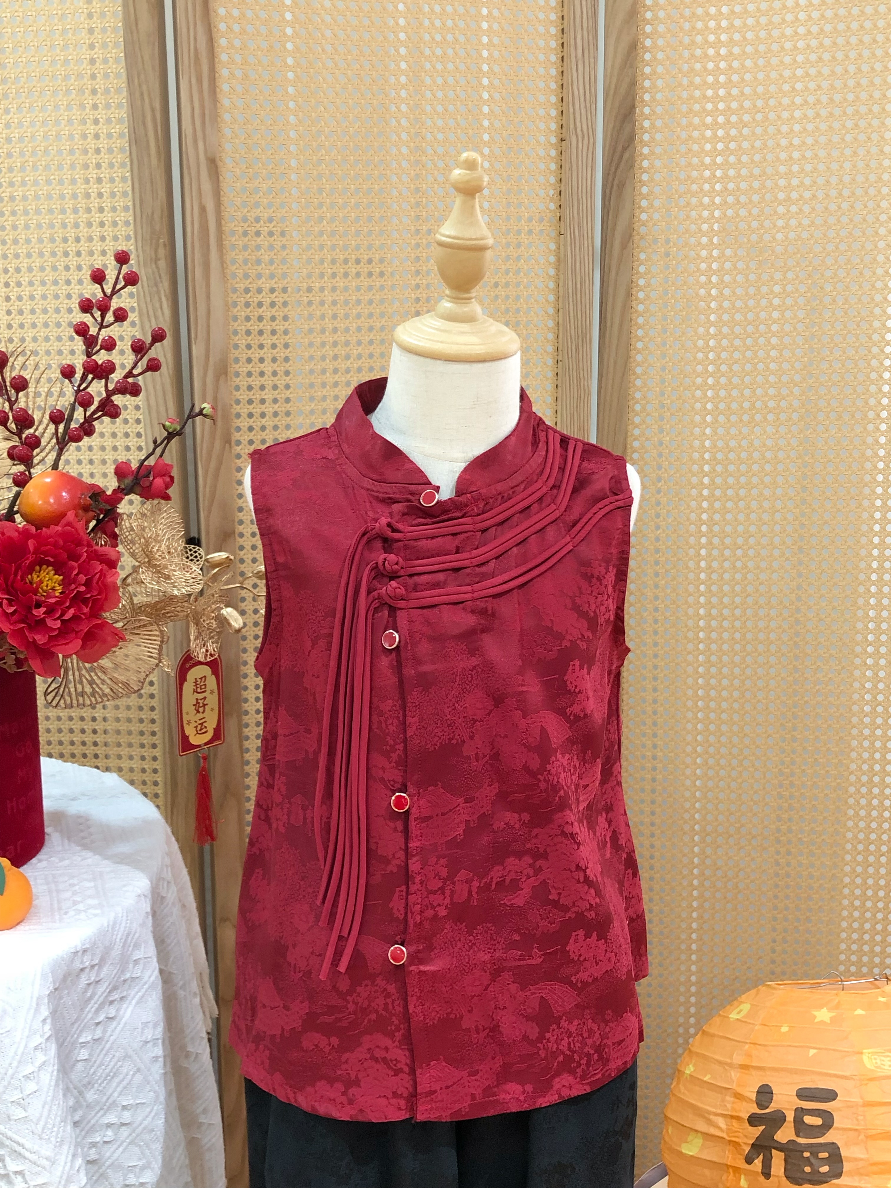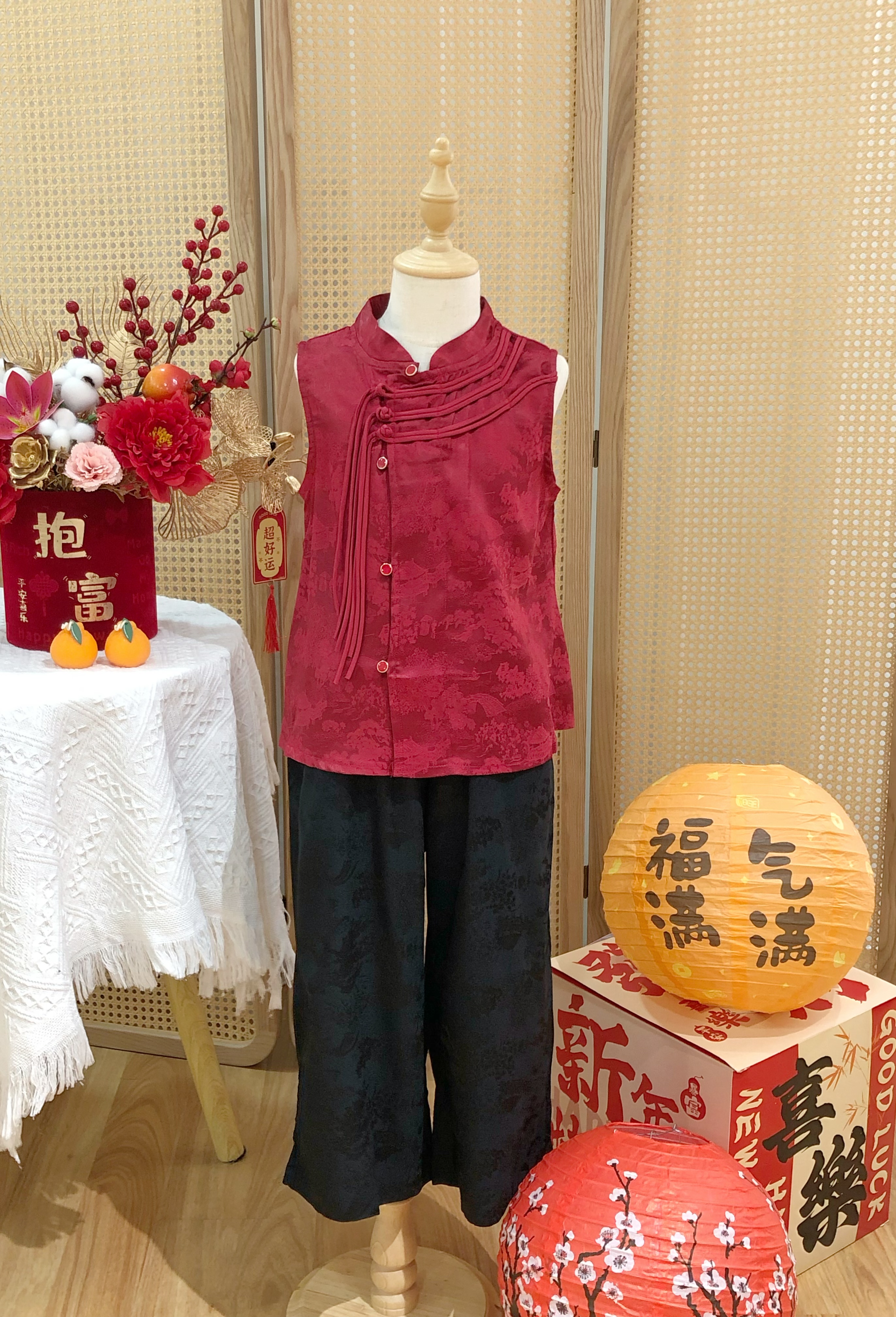 Traditional Chinese Qipao Vest with Modern Pants Set